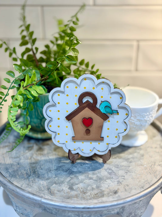 Birdhouse In Scallop Frame-unfinished